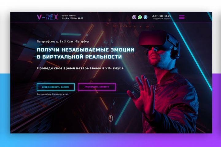 Дизайн первого экрана для клуба виртуальной реальности