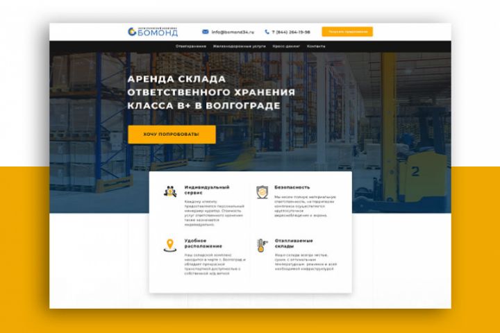 Дизайн лендинга по услуге аренда склада
