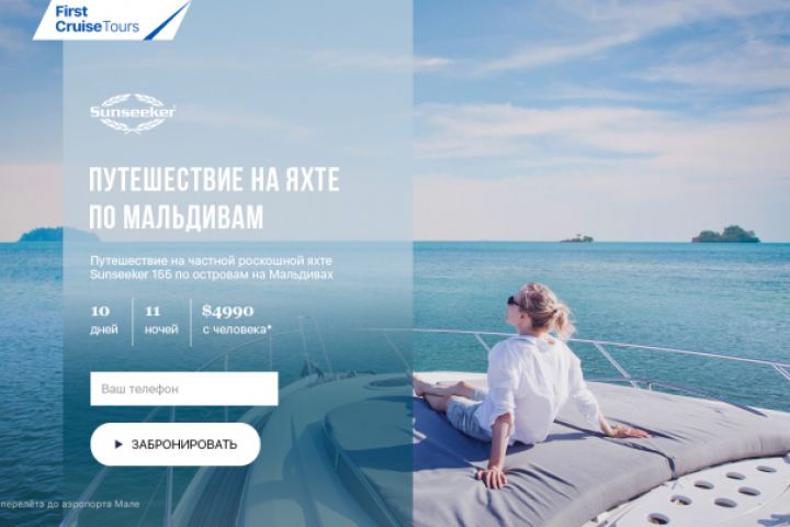 Пример дизайна страницы для сайта о путешествии на яхте