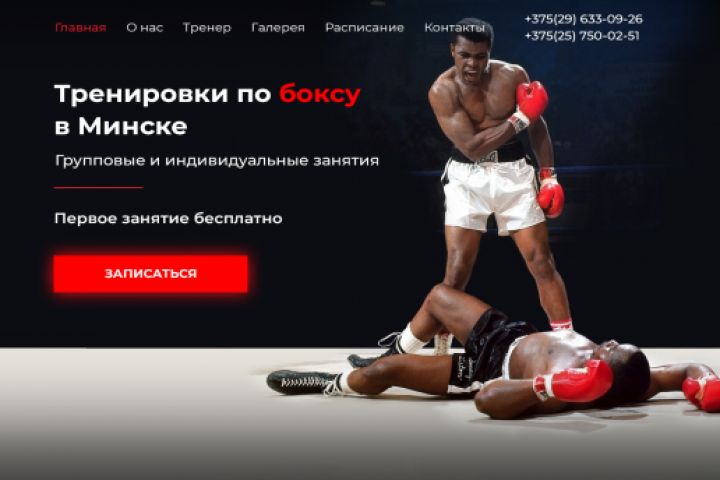 Лэндинг для клуба бокса с блогом и галереей
