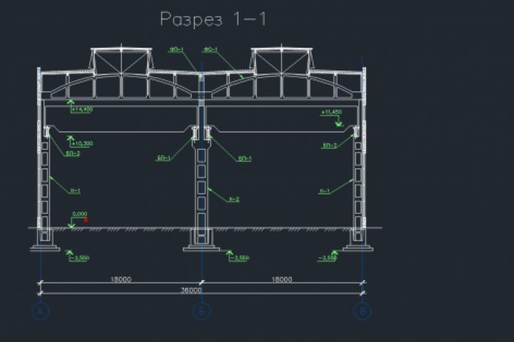Как образец представлена часть проекта "Промышленное здание"