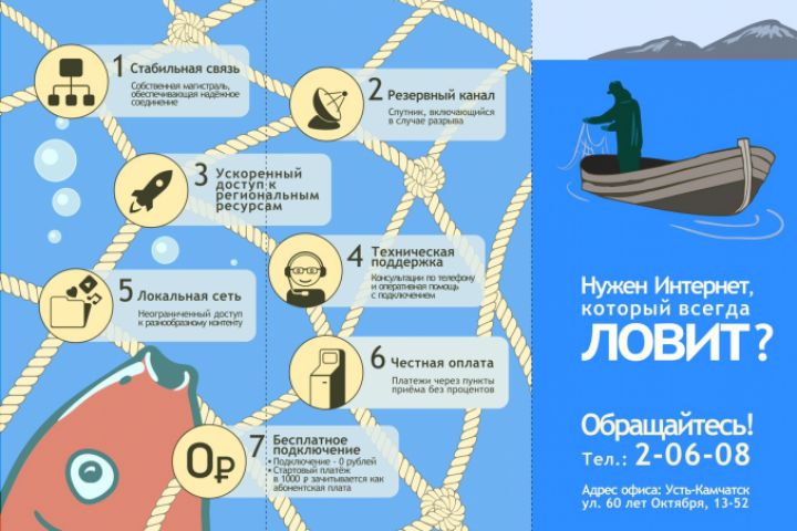 Разработка рекламного буклета-«гармошки» для интернет-провайдера. Идея, концепция дизайна и текстовое наполнение.