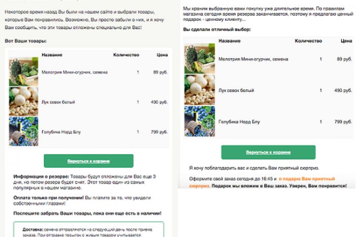 Интересно, что 30% возвращенных клиентов покупали из первого письма-напоминания.
