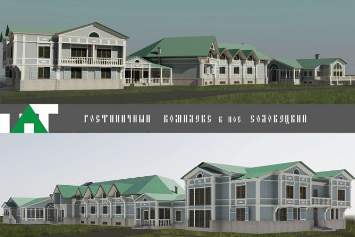 Проект гостиничного комплекса был выполнен в стиле классической русской усадьбы.