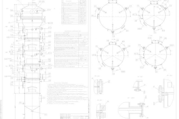Рабочая конструкторская документация на скруббер (сборочные чертежи, спецификации, детали, руководство по эксплуатации).