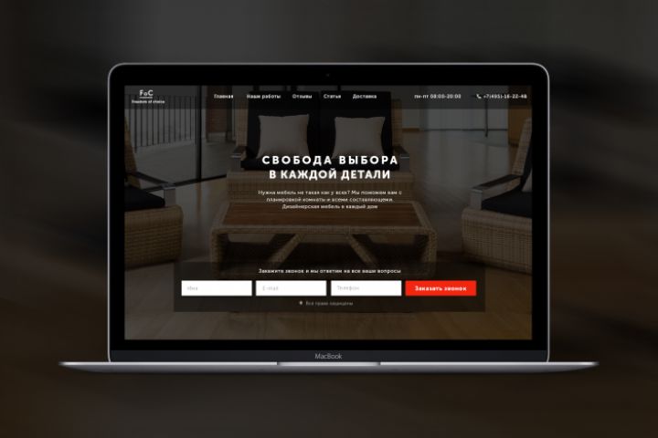 Landing Page магазина мебели на заказ.