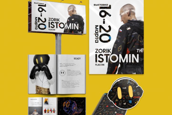 Это было учебное задание в моем колледже. Мне нужно было сделать этот проект в относительно короткие сроки, но я считаю, что результат неплохой. Я взял за основу дизайна стиль художника, для которого я сделал набор графических материалов для выставки.