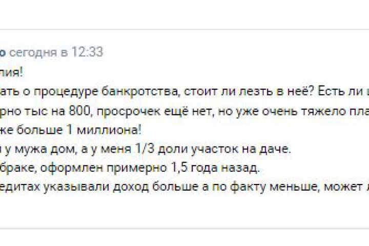 Вопрос юристу в VK . Задачей является продвижение кабинета юриста