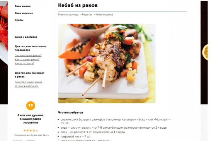 Рецепты для сайта компании «Раки России»