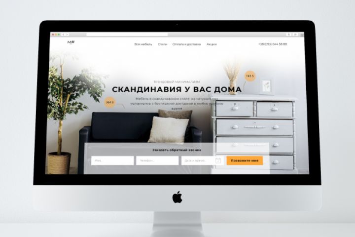 Разработка landing-page по продаже мебели в скандинавском стиле. Дизайн отображает принципы этого стиля в интерьере: простоту, лаконичность, сдержанность.