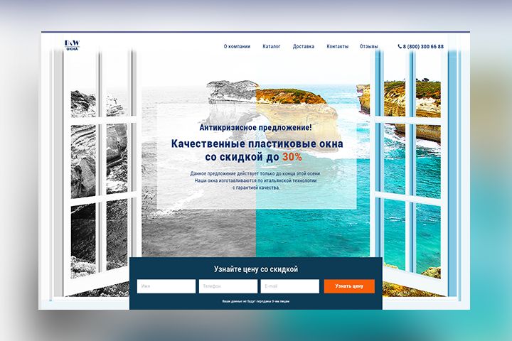 Лэндинг первого экрана, посвященного продаже пластиковых окон