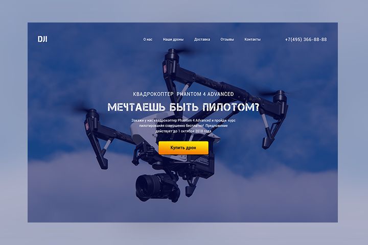 Первый экран лэндинга, посвященного продаже квадрокоптеров