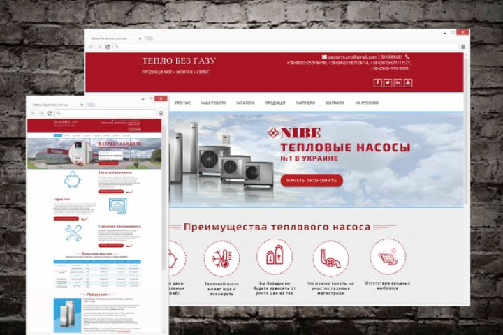 Сайт разработан для украинской компании по продаже геотермальных насосов и солнечных систем "NIBE". Хедер и футер были оставлены со старой версии сайта по желанию заказчика.