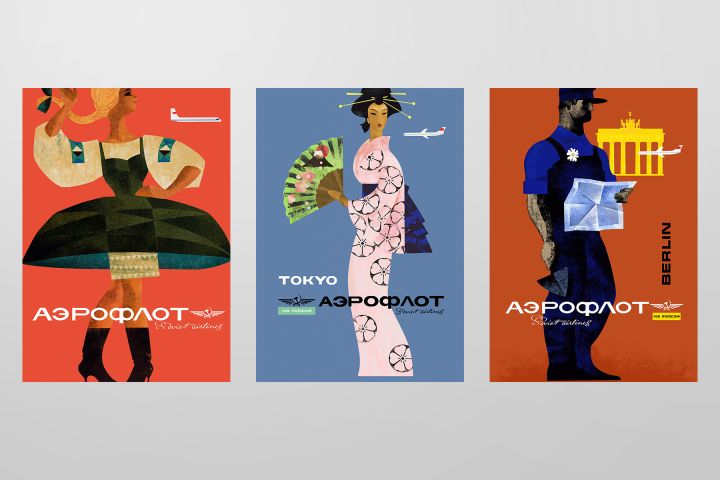 Отрисовка советских плакатов Аэрофлота в высоком разрешении с сохранением всех деталей и текстур
