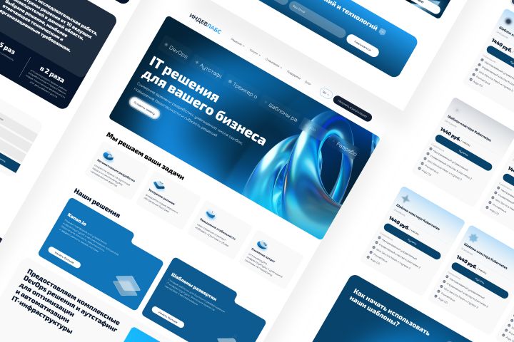 Дизайн сайта для IT компании, которая занимается автоматизацией процессов, разработкой готовых решений, а также оказывают услуги в сфере консалтинга и управлении инфраструктурой.