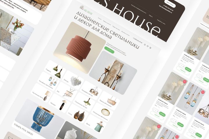 Стояла задача с нуля сделать интернет-магазин на Тильде для магазина дизайнерских светильников и декора для дома. У магазина был только профиль на Авито, заказчик планировал расширять ассортимент, упростить и автоматизировать работу с клиентами. На Авито не хватало функционала для удобной работы с карточками товаров.​