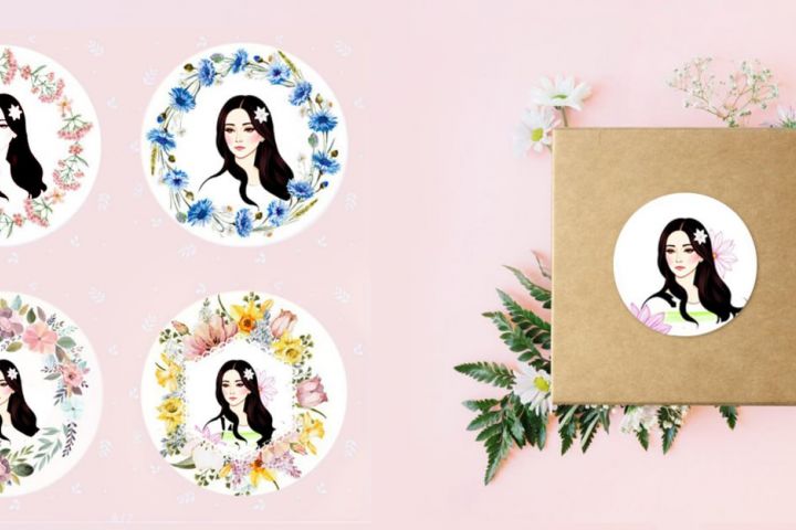 Наклейка на букеты. По желанию заказчика за основу было взято личное фото. При выполнении работы также использовалась нейросеть SD.