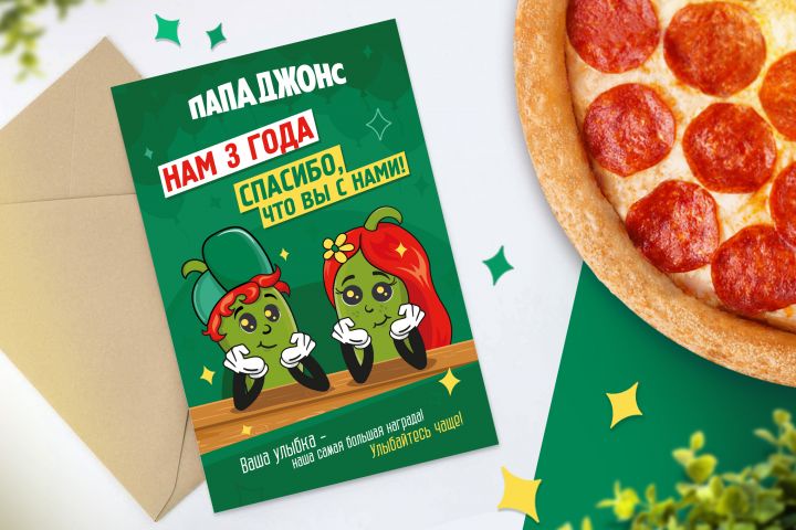 В честь Дня рождения ресторана в Сочи, компания "Папа ДЖонс" заказала создать подарочную открытку.