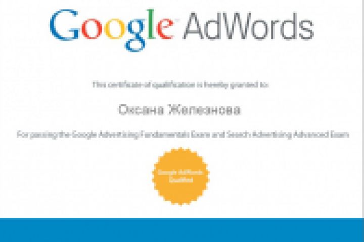 Официальный сертификат Google AdWords по рекламе в поисковой сети