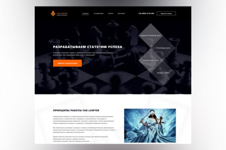 Разработка сайта для юридической компании компании Far Lawyer. Справедливость, надежность, доверие, помощь - 4 кита на которых "стоит" сайт.