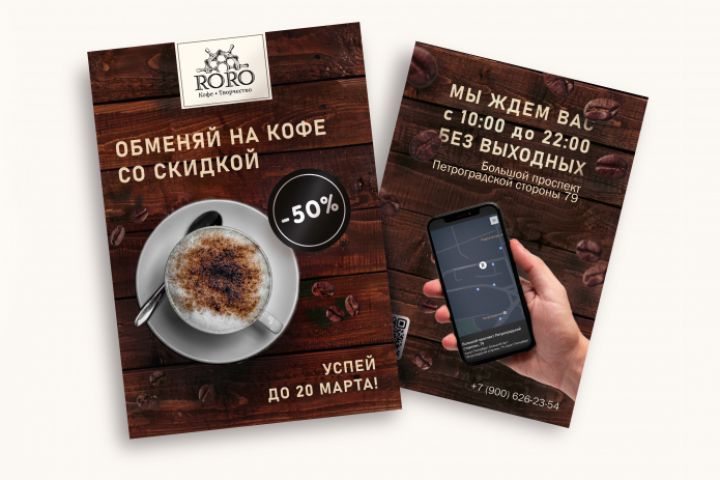 двухсторонняя листовка для кафе "RORO"