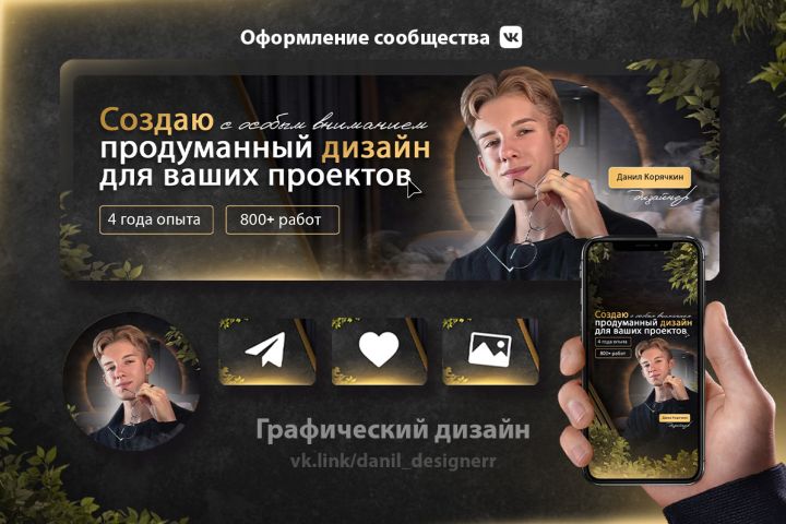 Дизайн упаковки для группы в ВК. Данный кейс по оформлению собственного сообщества. Мне было необходимо донести посыл о том, что сотрудничество со мной всегда приятный опыт, я располагаю к себе клиентов за счет доброжелательности в общении и собственного опыта, что и передает дизайн. Цель была достигнута а результатом атмосферного оформления доволен.