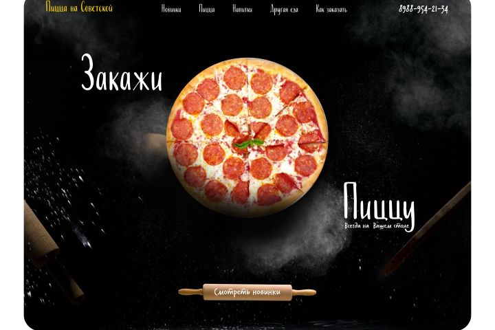 Все блоки и их наполнение кастомизировала под клиента пиццерии, что делает удобным сделать заказ самой любимой пиццы.
