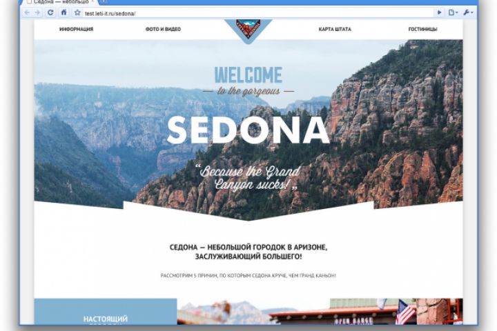 Вёрстка учебного макета "Седона" во время прохождения курса в HTML Academy