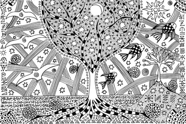 Графическая картина. Авторская работа. Формат 15*21 см. Гелевая ручка.