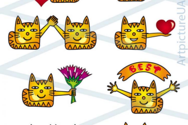 Комплект иконок смешных и позитивных котиков. Стоимость комплекта 400 р. Лицензия royalty free. Покупка авторского права по договоренности
