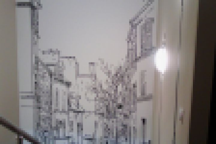Размер работы 2100х3900(h). Материалы: акриловая полуматовая краска на водной основе Основа: молярный холст, окрашенный белой водоэмульсионной краской