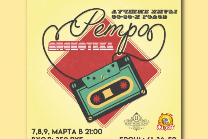 Заказчик: ночной клуб BOOM BOOM ROOM. Задача: макет для анонса мероприятия.