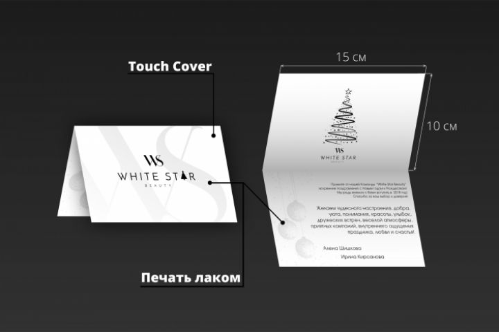 Заказчик: Алена Шишкова, салон красоты White Star. Задача: разработать новогоднюю открытку для посетителей.
