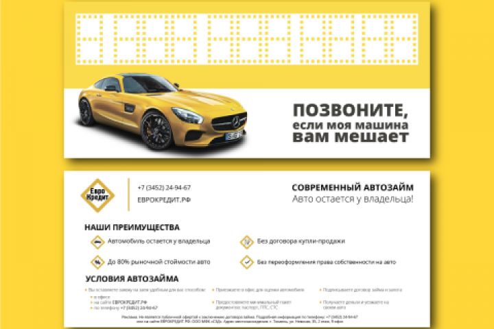 Заказчик: Евро Кредит. Задача: разработать макет рекламного буклета с полем для номера.