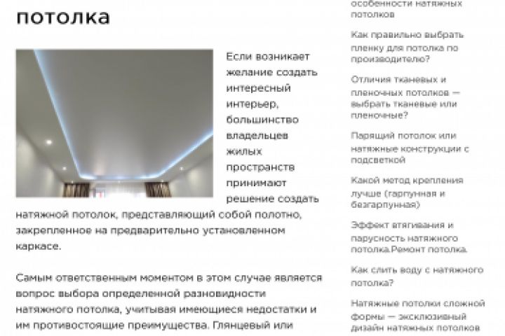 SEO статья на тему матовых потолков