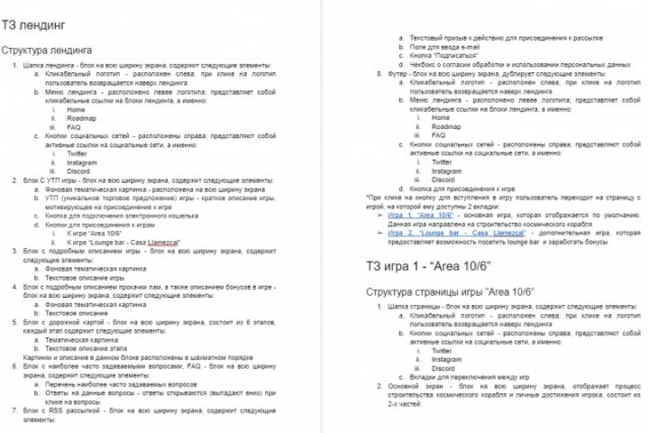 Заказчику требовалось разработать техническое задание по созданию лендинга с онлайн-игрой
