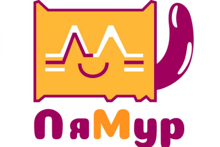 РЕШЕНИЕ: Логотип в образе кота, его тело это коробка для подарков, хвост - воздушный шарик. Прежний логотип был в виде буквы =М=, ассоциация с кошачьим мурчанием. Цвета выбраны яркие: оранжевый, розовый и фиолетовый, как ассоциация с праздником.