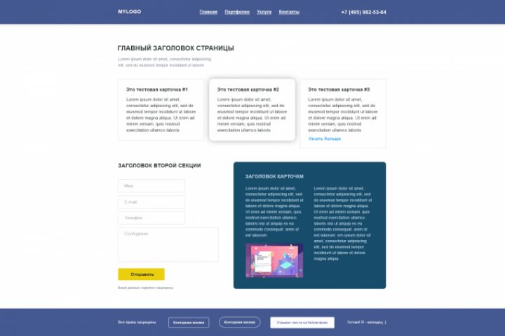 Lending Page с применением HTML5 и CSS3, простой лаконичный дизайн сделает простую рекламу с возможностью обратной связи.