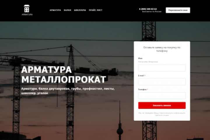 Landing Page по продаже арматуры