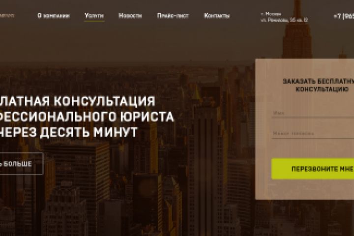 Дизайн корпоративного сайта юридической компании, выполненный в строгом сдержанном стиле.