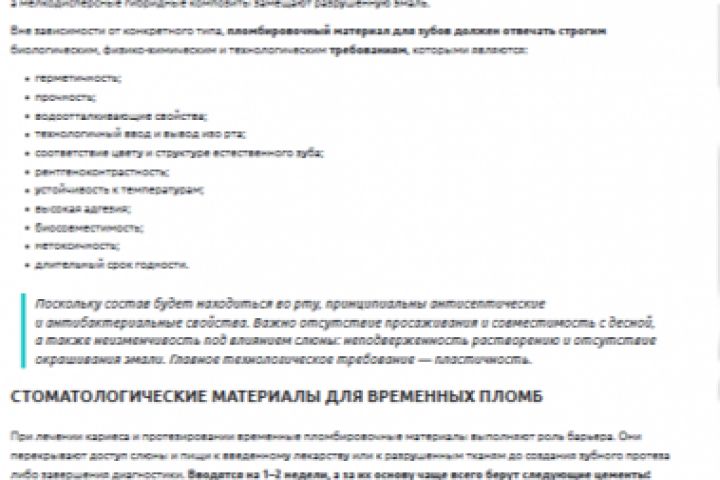 Текст для раздела интернет-магазина по продаже пломбировочных материалов