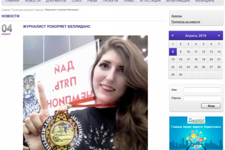Наша друг и коллега,руководитель местного отделения СЖП в городе Пущино, редактор телевидения, основатель школы Журналистики и просто хороший человек, Диана Ларионова, заняла почётное место в конкурсе восточного танца, а также стала чемпионкой России в шоу-беллиданс.