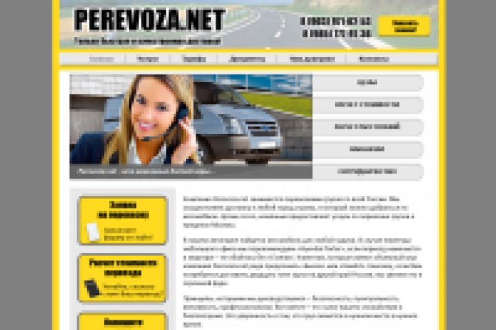 Сайт транспортной компании "под ключ". Уникальный дизайн, фиксированная верстка, сервис расчета стоимости доставки грузов.