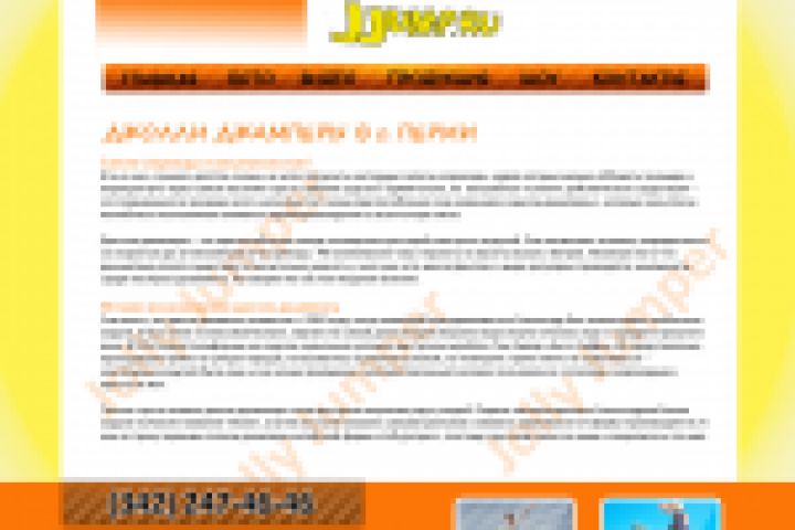 Редизайн сайта "Джолли Джамперы в Перми". В результате проведенной работы сайт стал более яркий и светлый, получил настроение легкости и задора, присущее его тематике - реализации приспособлений для быстрой ходьбы и гигантских прыжков.