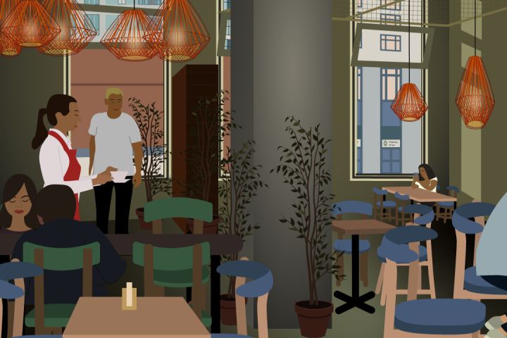Векторная 2D-иллюстрация для местного кафе для визуального контента.