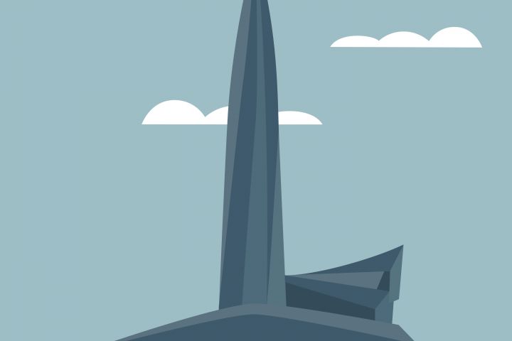 Лахта Центр В Санкт-Петербурге нарисован для конкурса для сувенирной компании «АКМ».