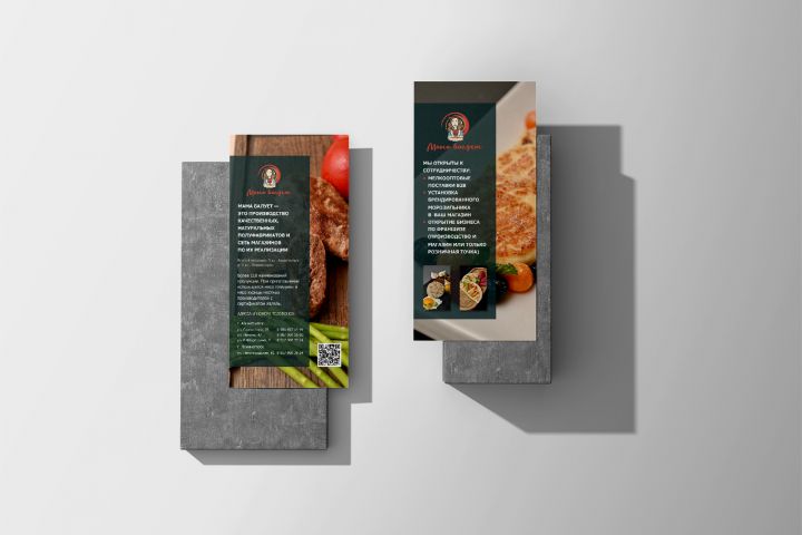 Листовка двухсторонняя магазина полуфабрикатов Мама балует в г.Альметьевск.