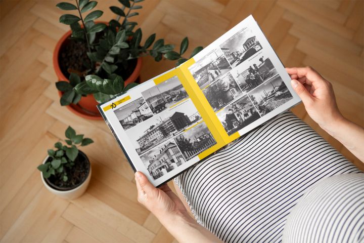 Первая черно-белая сторона книги-перевертыша была подготовлена к 70-летию г. Альметьевска,