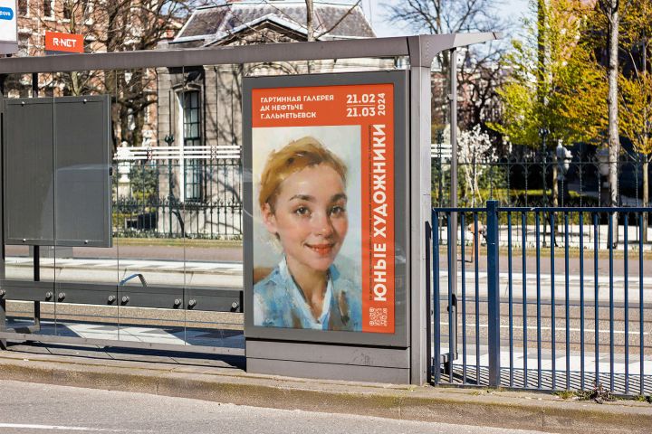 Афиша выставки детской художественной школы №1 "Юные художники" в минималистичном стиле.