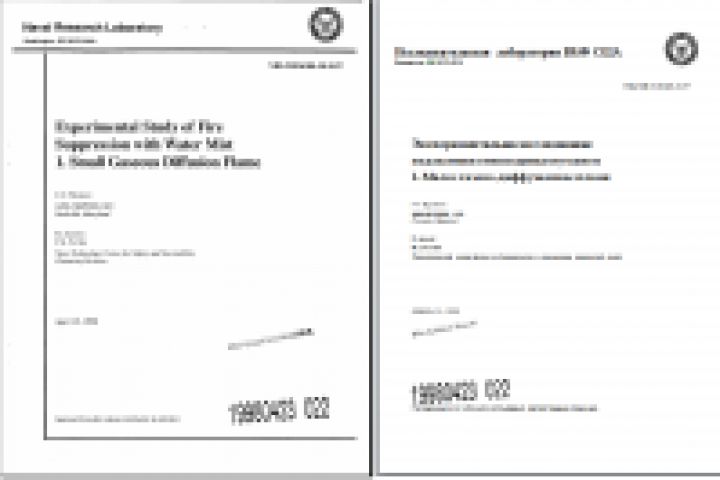 Научная статья по подавлению огня водяным туманом (Исследовательская лаборатория флота США).